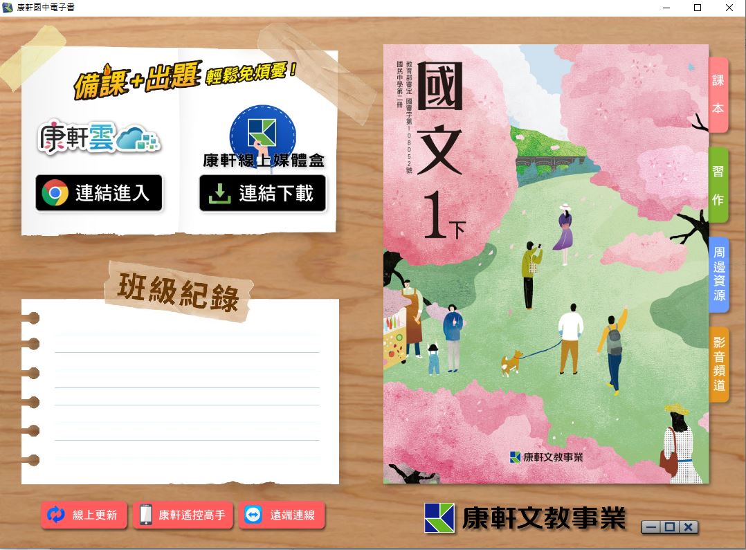 108學年下學期 國中 康軒版 國文電子書 1年級(含課本、習作含解答)教學光碟DVD版
