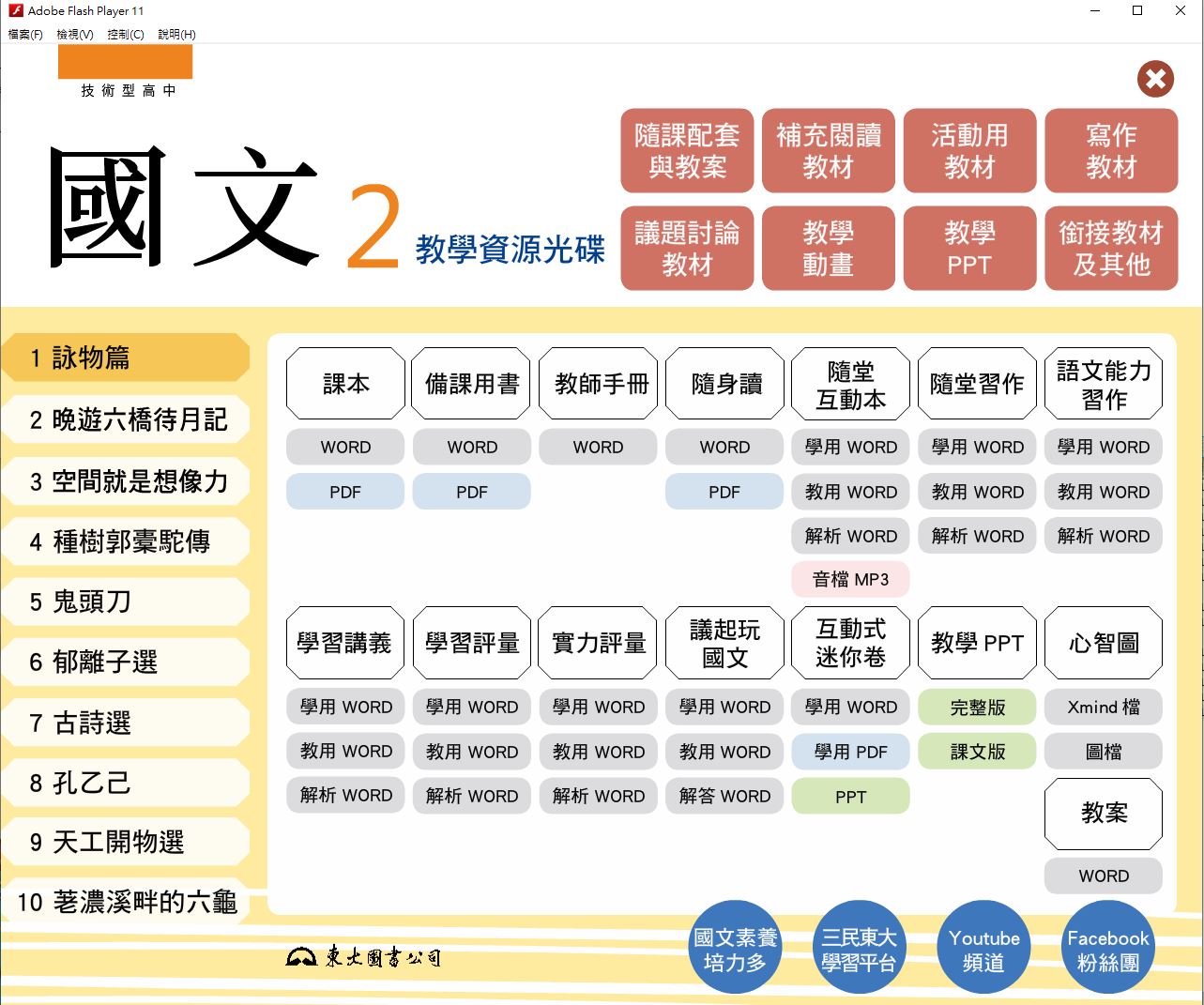 111學年下學期 技術高中 三民東大版 國文科 1年級 教學光碟