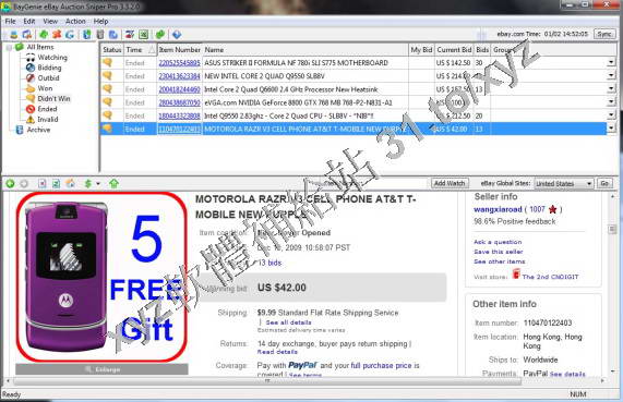 • BayGenie eBay Auction Sniper Pro v3.3.5.8 英文正式版(eBay的輔助交易軟體)