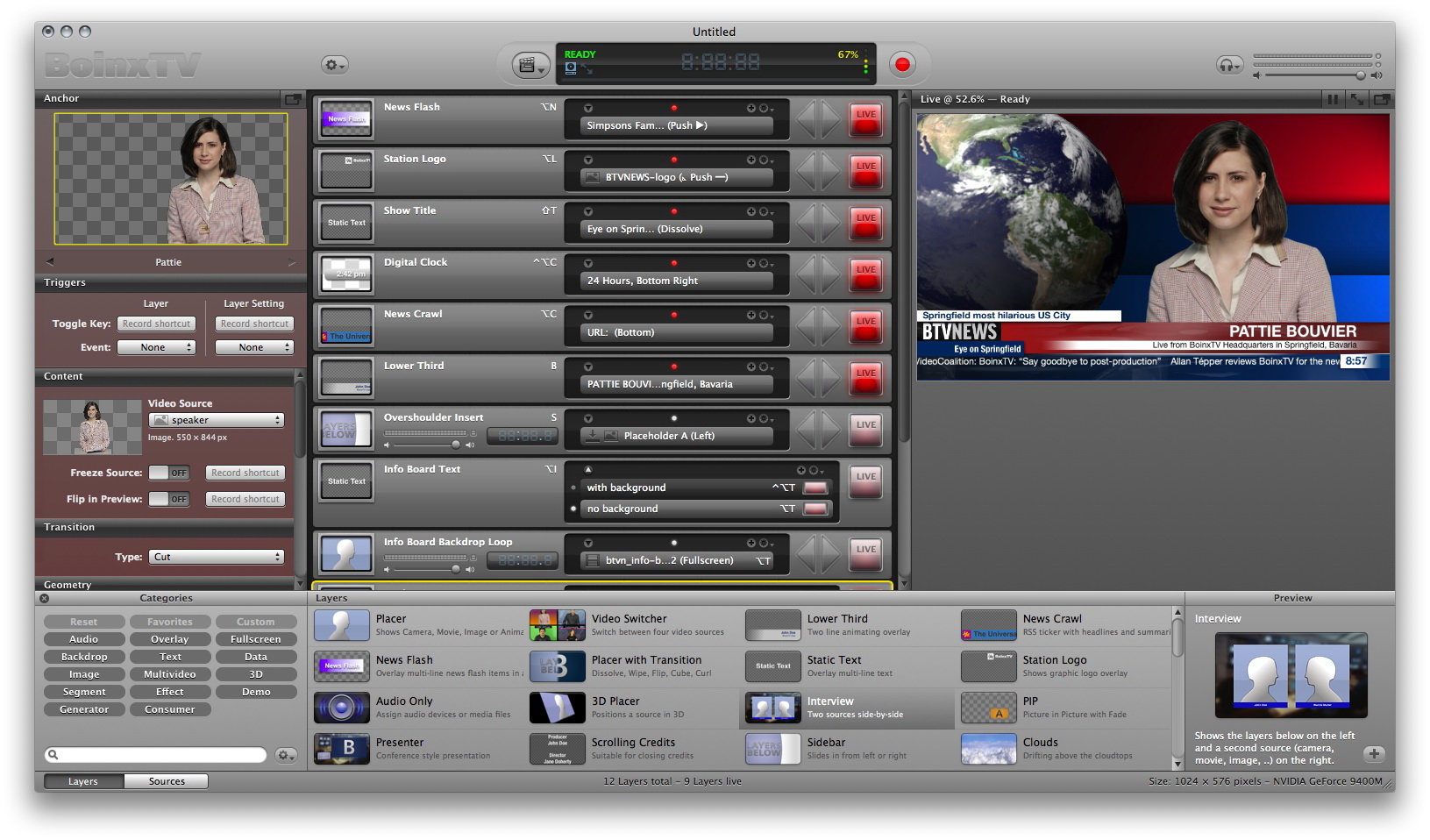 BoinxTV接口,可以很容易地創建專業的“電視風格”