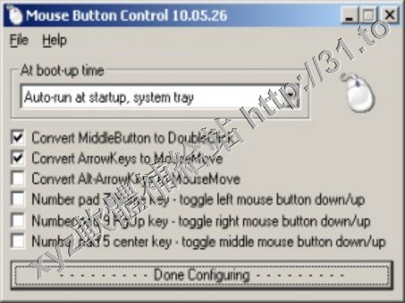 Converts the four arrow keys to mouse moves option. To press an