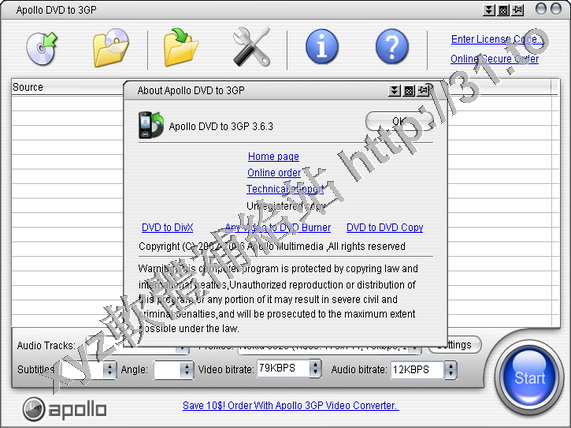 • Apollo DVD To 3GP v2.5.0 英文正式版(將DVD影片轉換為手機3GP視頻格式軟體)