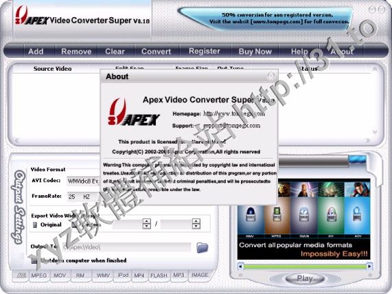 • Apex Video Converter Super v5.83 英文正式版(視頻格式轉換軟體)